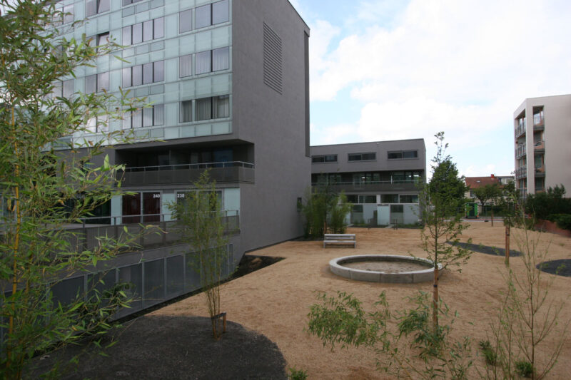 ‘This combination of ground-level houses and apartments meets many contemporary desires and needs. For the houses in three layers, with the kitchen on the ground floor and the bedrooms on the second floor, the middle floor has been conceived as a ‘neutral’ layer. Depending on your stage of life and the composition of your household, you can work, play, sleep, or live there: over the years you can move into your own home, as it were. There is also a communal outdoor space, in the garden or on the roof of the car park that is placed between the blocks. Initially, the houses were intended for the elderly, but starters have discovered that they can get relatively many square meters in Geuzenveld for relatively little money and that they are also close to the ring road. This form of social sustainability deserves a nomination, according to the jury’.