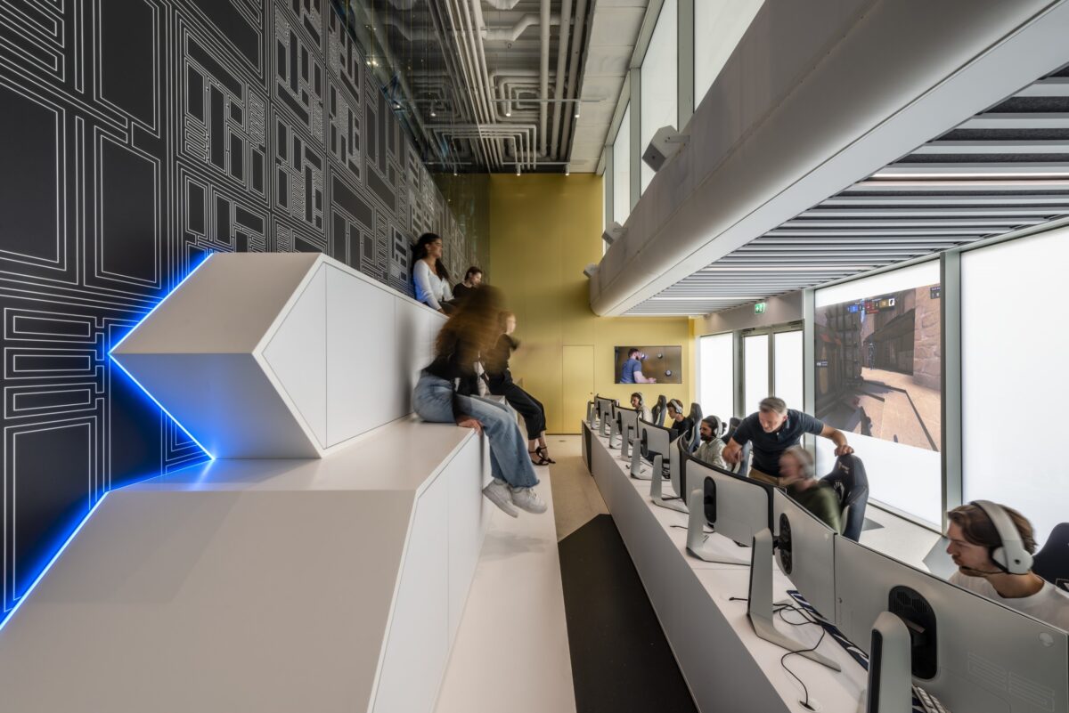 Situated in the heart of the new community building Het Platform (also designed by VenhoevenCS), the facility overlooks the Station Square. Thanks to the location and a public passage through the building, Team Liquid players can train and compete and at the same time stay connected with the vibrant city of Utrecht.