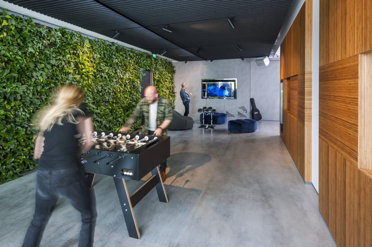 This is not tucked away in walls or ceilings, but highlighted and exposed as ornaments, emphasising that internet and tech now represent a pumping heart, one that supports a way of life. The facility is adventurous — as a well-designed game would be — with a modular and multi-purpose floor plan, utilising sliding walls to offer a flexible and fluid use of space.