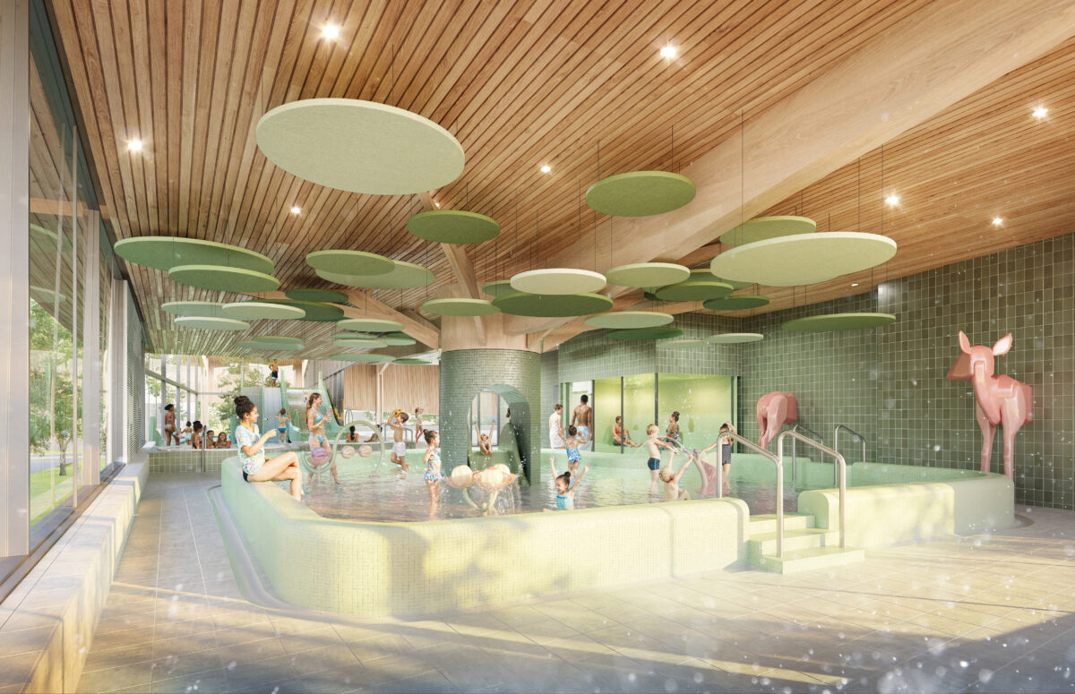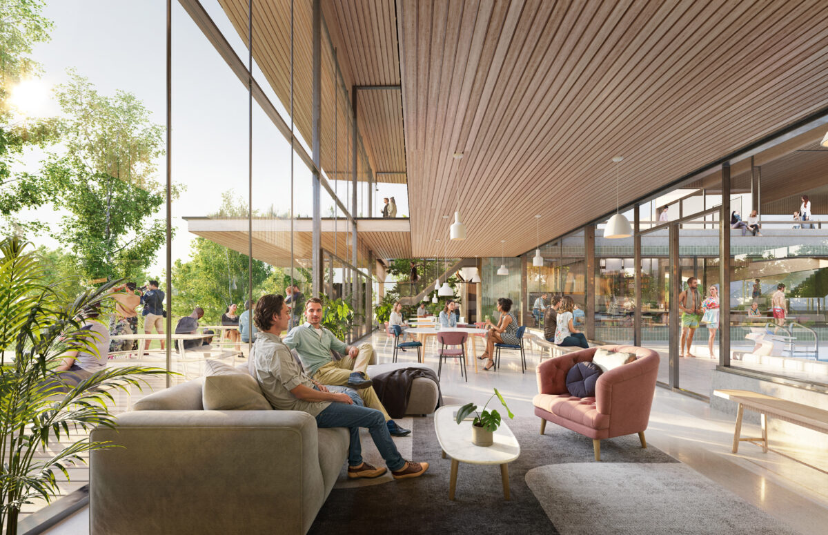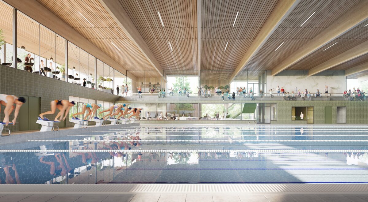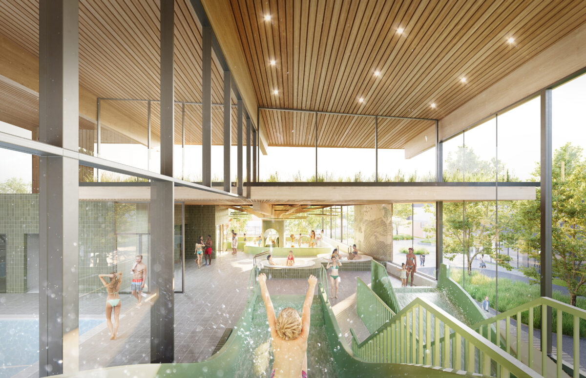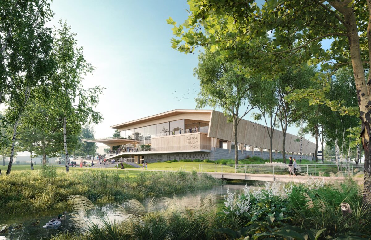 The innovative swimming complex in Apeldoorn North, designed by VenhoevenCS architecture+urbanism and in cooperation with Wind Design & Build, seamlessly integrates with its natural surroundings. Its dynamic and all-encompassing design promises to be a vibrant addition to this evolving area.