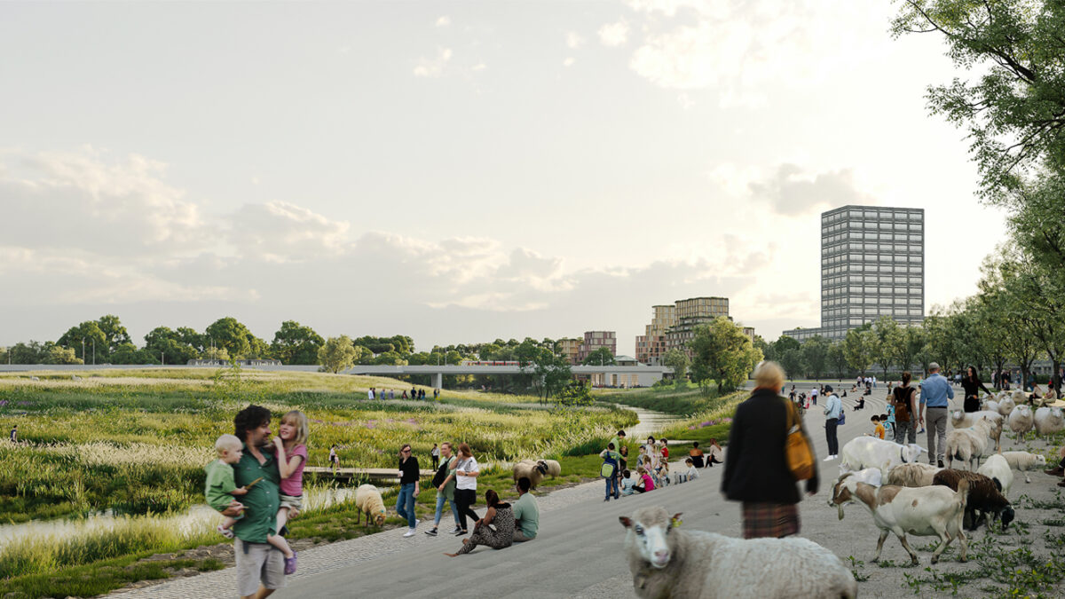 ‘Floodplain Park’ is a designed urban landscape within Prague, integrating flood control in the natural and industrial heritage waterfronts of the Vltava River. Outside the dikes and within the city, the development intensifies the relation between the nature of Prague and its inhabitants. Water safety provides a basis for landscape and urban strategies.