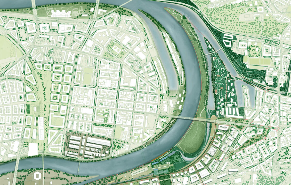 As part of the water safety program of the Vltava River, the City of Prague together with IPR aim for a development strategy for the Rohan & Libeň Islands area and a design for the adjacent Maniny Park. A long-term landscape proposal was requested, integrating a new park and a housing development. And a new river arm had to be incorporated into the park design.