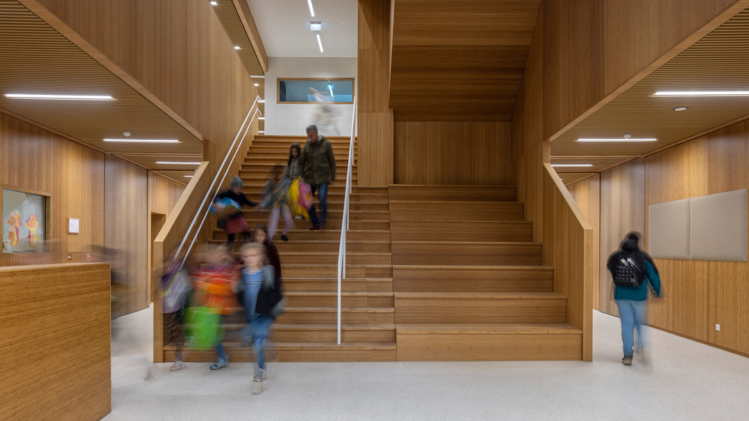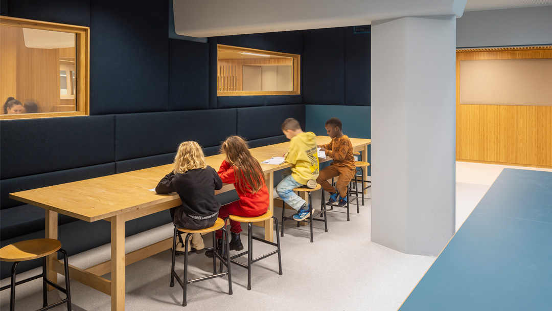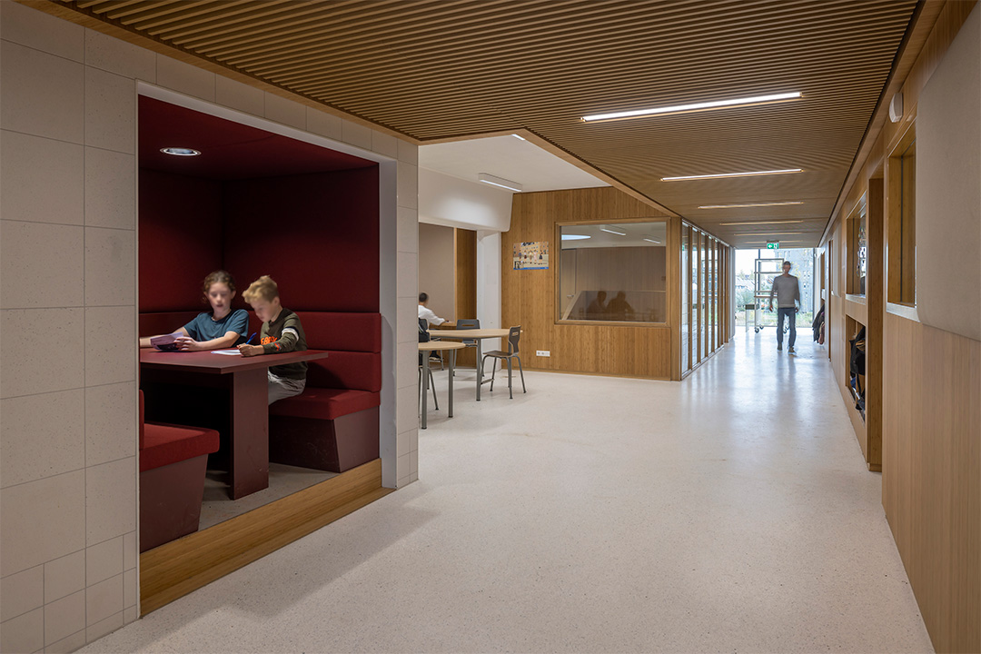Asked to implement new requirements for schools, we re-designed the interior. To grow with the school community, we have provided Forum ‘t Zand with a light and spacious interior design. The layout responds to various forms of education, working together and playing. We selected biobased and circular materials to provide the school with a warm, healthy, and lively atmosphere.