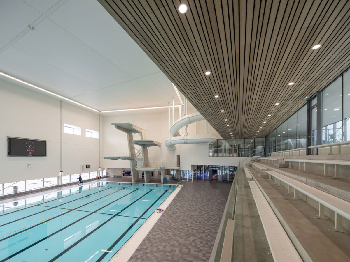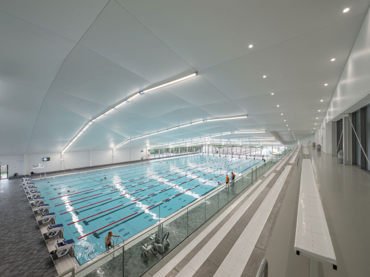The design by VenhoevenCS includes a 10-lane 50 meter competition pool, multi-purpose pool with 10 meter diving platform, multi-basin and NOC * NSF sports hall of 54 x 33.