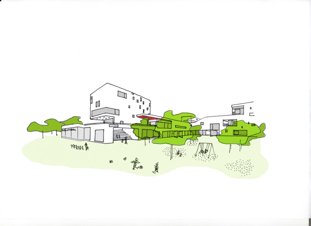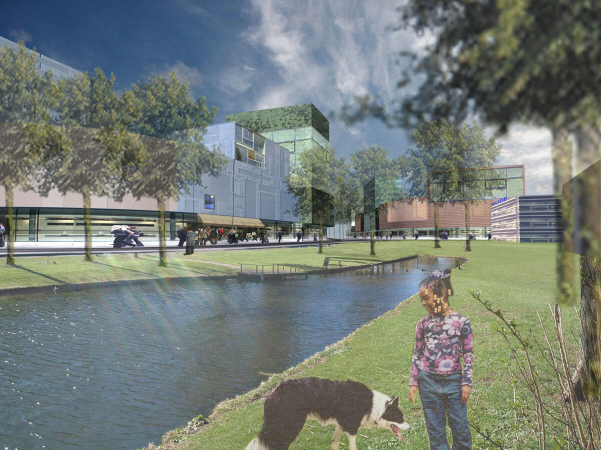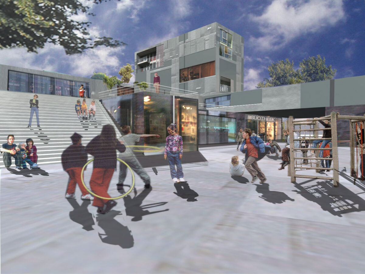 The Kooiplein in Leiden is located on the Willem de Zwijgerlaan, a busy road connecting the A4 and A44 motorways. It creates a barrier between the centre of Leiden, the Merenwijk and the green heart of the Randstad conurbation. In the framework of a neighbourhood development plan, the Municipality of Leiden wants to realise a new centre for Leiden North, while removing the barrier created by this heavily travelled arterial road. The plan also aims to provide a new impetus for the multicultural Kooineighbourhood. The plan includes a community school which we also design, and which is discussed in the context of the ‘care and education’ chapter.