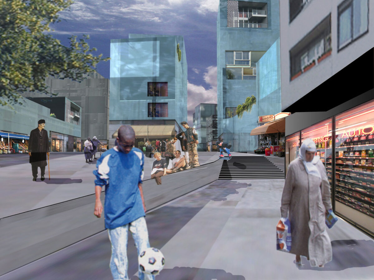 | Program: | 485 homes, supermarket, shops, business accommodations, community centre, police office, community school, theatre, mosque, nursing home, healthcare cluster, 1000 parking spaces and a tunnel |
