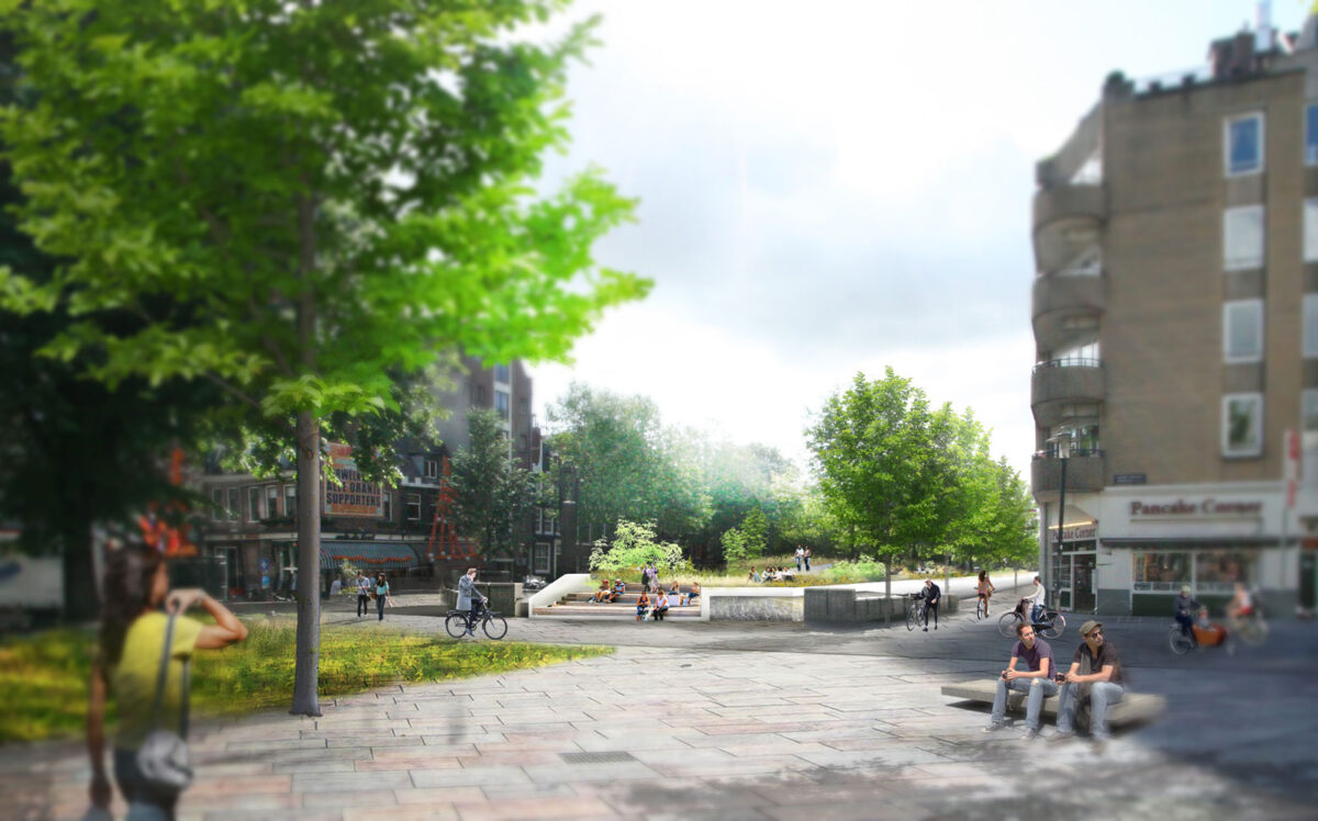 The proposed Low Line KoningsMunt  is a floating facility in De Singel. The roof of the parking is 1.2 meters above street level. On the roof is a green pedestrian route from Koningsplein to De Munt. In spring tulips and daffodils can grow here if it were the window of the famous Amsterdam Flower Market.