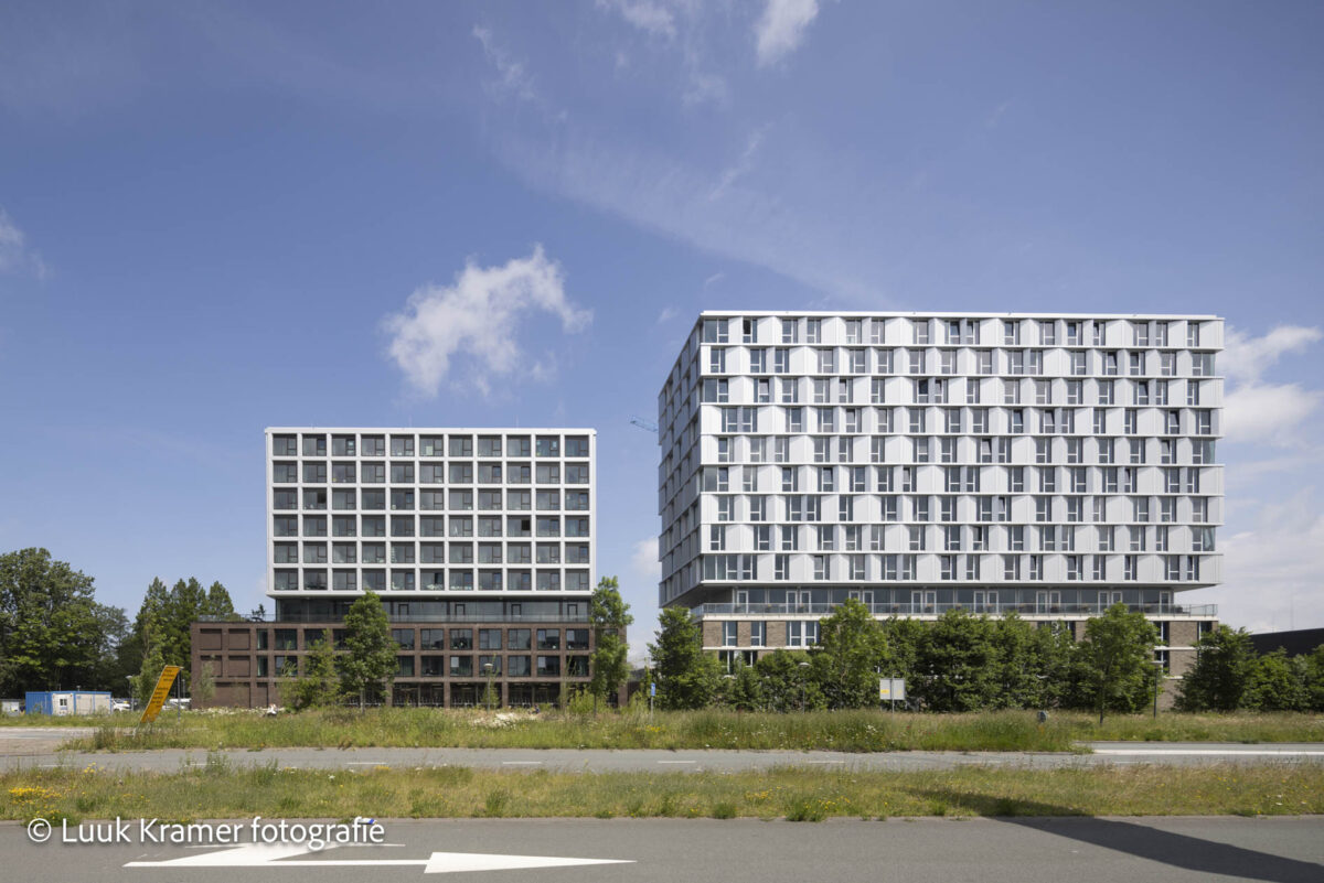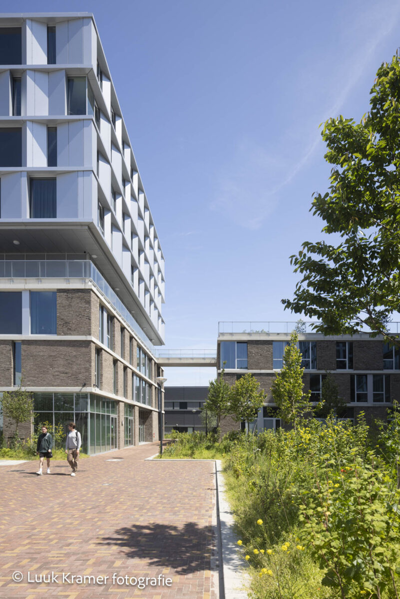 The answer is MORE, a name that refers both to the utopian ideas of the 16th-century philosopher and statesman Thomas More and to the shared ambitions of this plan. MORE comprises roughly 1,200 rental homes and a hotel, mainly intended for students, young professionals, and local and international university staff. The mix of shared facilities and communal areas, within the buildings as well as in the park and on roof terraces, will help foster a vibrant community of students and campus residents that other Leiden locals and workers will also find appealing.