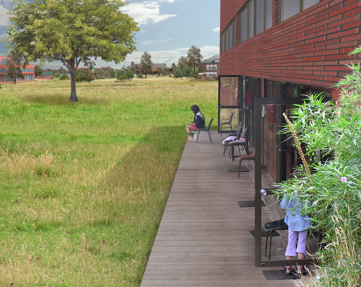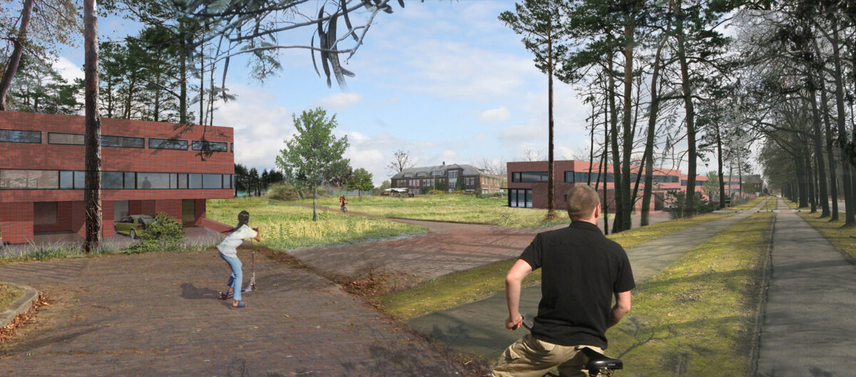 Saksen-Weimar, a former barracks for the Dutch army, will be rebuilt into an estate where the new inhabitants can live, work and enjoy recreation surrounded by nature. The homes are along the edge, half-hidden between the trees to create a large, open and car-free area in the middle. Nearly every building in Saksen Weimar is directly connected to this central, open space by verandas. Children can cross the street safely and walk to the baker on Saturday morning to buy fresh bread with no need to be afraid they’ll be in any danger.