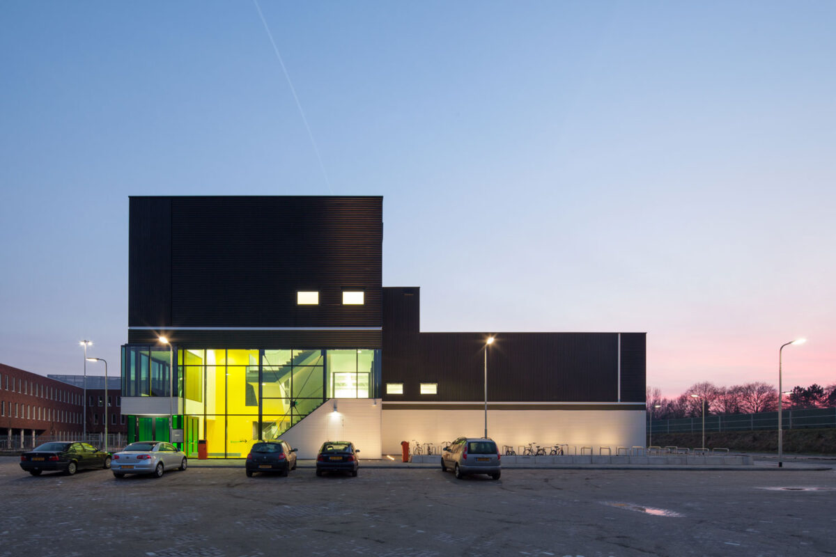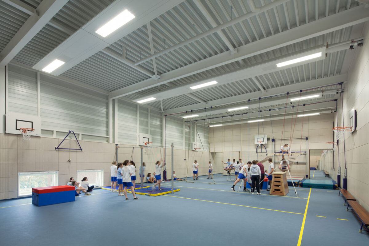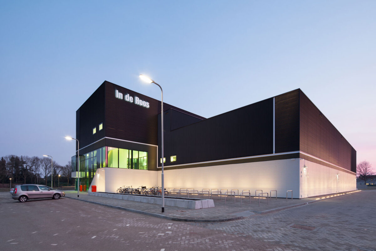 The In de Roos sports hall in the southeast quarter of Roosendaal, along the A58, is intended to provide the sports facilities for the college pupils of the Jan Tinbergen College, as well as to serve as a supralocal sports facility for the city.