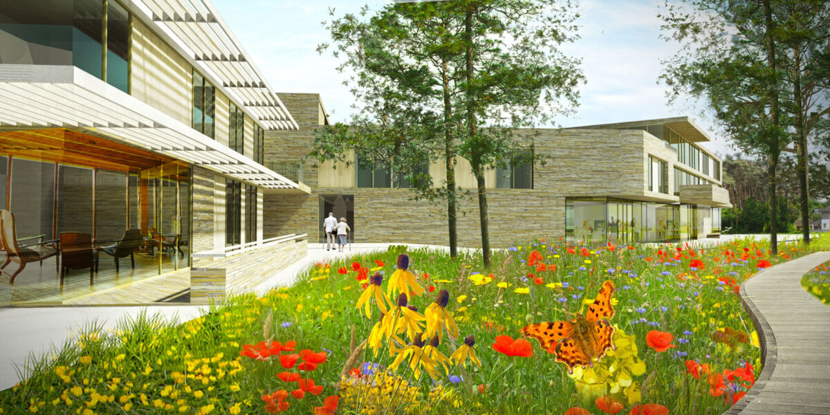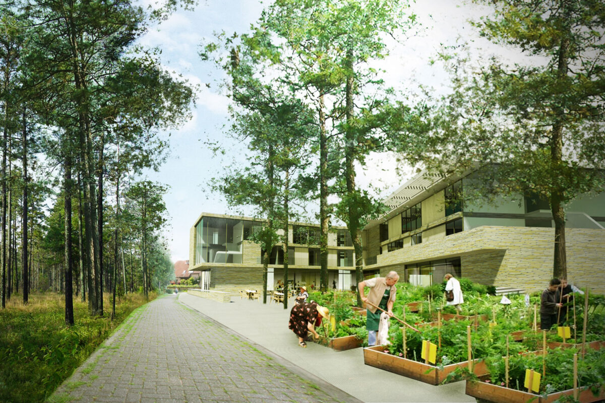 The green gardens surrounding the nursing home invite you to take a stroll. A public restaurant with an integrated terrace for residents, visitors, passers-by and people from the neighbourhood provides integration with the environment, as well as the day care centre with vegetable garden. There is also room for additional public programming at the woodland plot ( e.g. physiotherapy, fitness, swimming, etc).