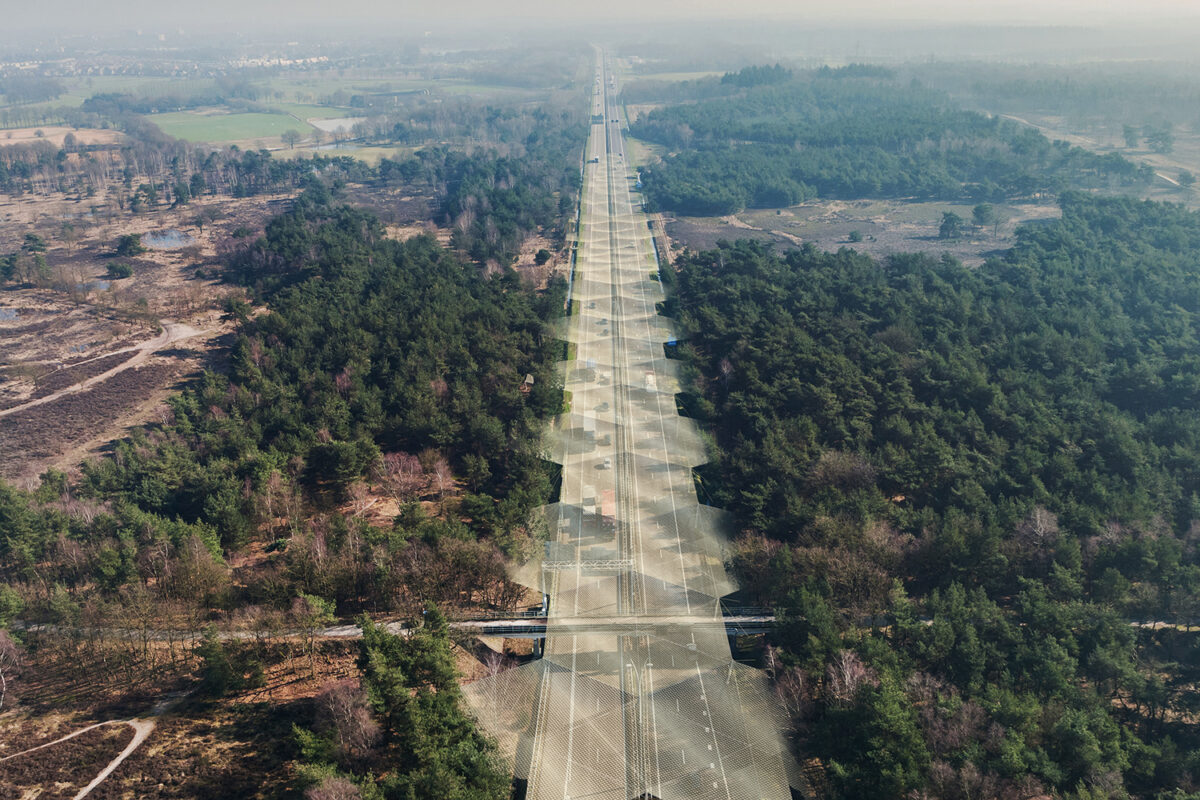 The ‘web over the motorway’ offers a huge surface area on which to generate renewable energy. Thanks to its honeycomb structure, the lightweight crossing can be filled with materials that generate solar energy. The gossamer web is also modular, so it can grow and evolve in line with technical innovations. This double use of space above the motorway means that less of the landscape needs to be set aside for solar panels, which would negatively affect biodiversity.
