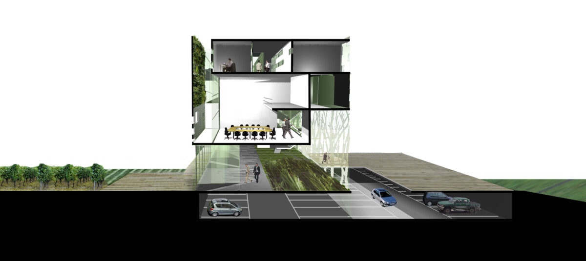 The image and activities of ZLTO are reflected in the many innovative elements in the design, such as vertical vegetable farms (the products to be used in the restaurant) and healthy, natural climate systems. We also wanted to create a connection with the general public, making the building as transparent as possible, symbolizing the activities of ZLTO and its members by adding as many natural elements as possible and stimulating agritourism with a farm-camp site concept.